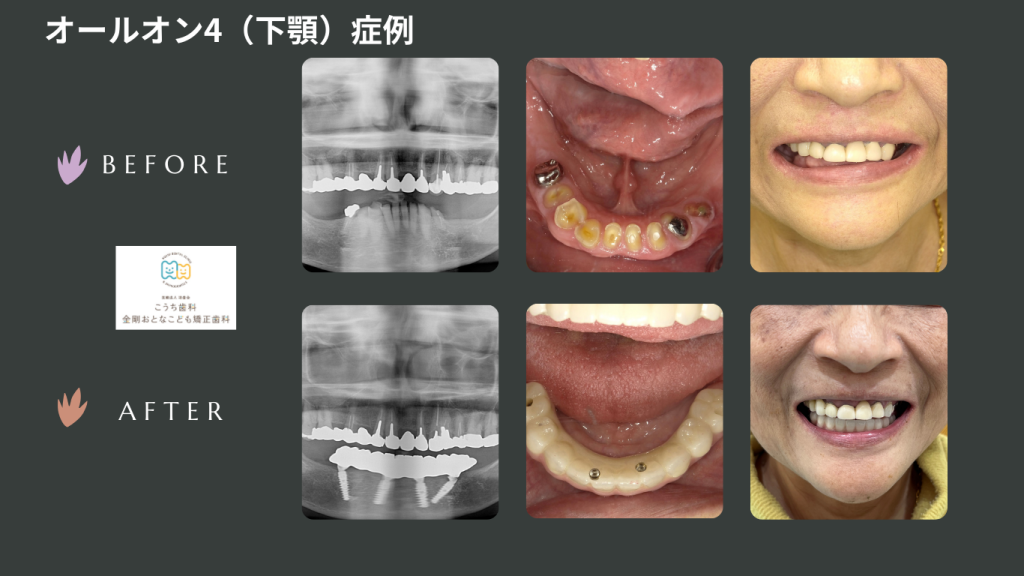 大阪狭山市、富田林市、河内長野市にお住いの皆様こんにちは!金剛駅前にある、こうち歯科金剛おとなこども矯正歯科です🦷✨ 【症例紹介】下顎All on 4 患...続きを読む